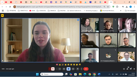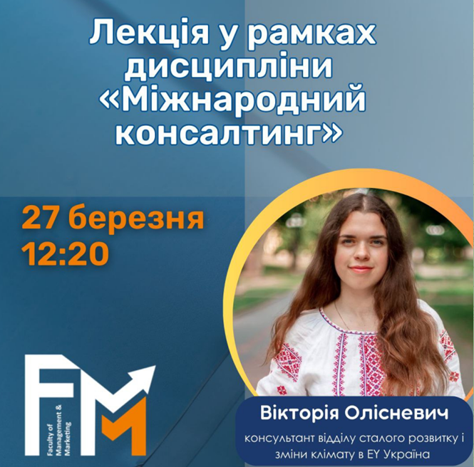 27 березня 2025 року відбулася онлайн-лекція для студентів 4 курсу спеціальності «Економіка» освітньої програми «Міжнародна економіка» на тему «Міжкультурні та ділові комунікації у глобальній консалтинговій мережі EY». Захід відбувся у межах вивчення дисципліни «Міжнародний консалтинг» та був організований проф., д.е.н. Оксаною Онуфріївною Охріменко.